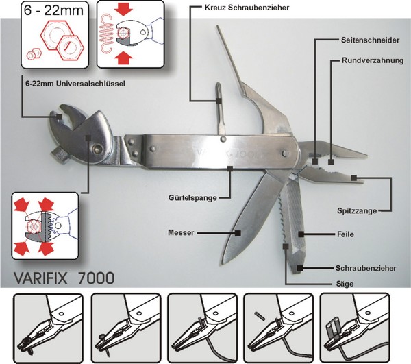 Screwdrivers and special Plier with Wire cutter and Belt clip.